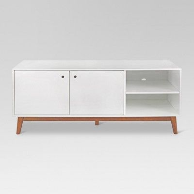 58" Amherst Mid Century Modern TV Stand White/Brown