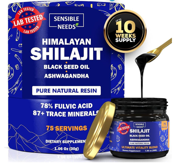 Pure Himalayan Shilajit Organic Resin Supplement, Shilajit for Men & Women with Black Seed Oil & Ashwagandha, Energy, Immunity, 78% Fulvic Acid, 87+ Trace Minerals, 400mg DLC: Sept27
