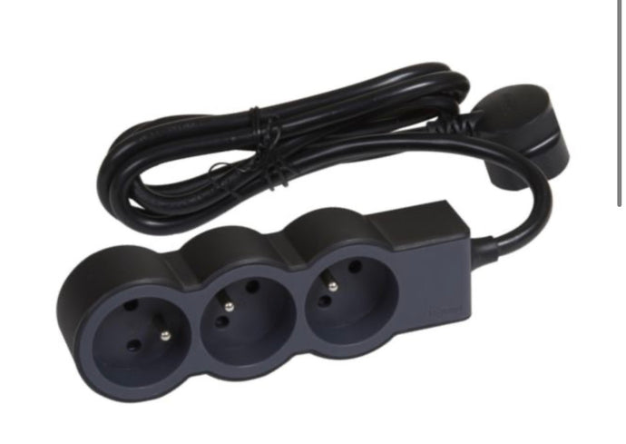 RALLONGE MULTIPRISE EXTRA-PLATE AVEC 3 PRISES DE COURANT AVEC TERRE AVEC CORDON 1,5M