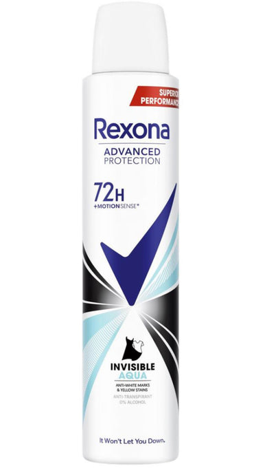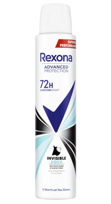 REXONA DÉODORANT SPRAY INVISIBLE AQUA 72H ANTI-TRACES ANTI-TRANSPIRANT, 200ML