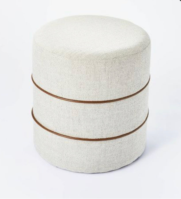 Catalina Round Ottoman Cream with Leather Piping - Threshold designed with Studio McGee LPFN967554