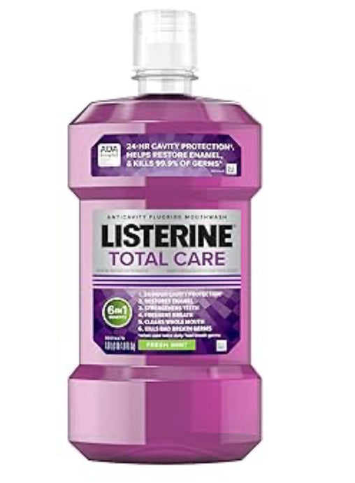 Listerine Total Care Anticavity Fluoride Mouthwash, 6 Benefits in 1 Oral Rinse Helps Kill 99% of Bad Breath Germs, Prevents Cavities, Strengthens Teeth, ADA-Accepted, Fresh Mint, (1 L) DLC: Mars27