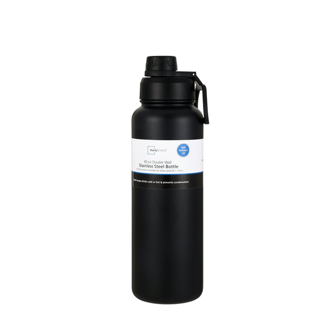 Mainstays 40 oz Black Stainless Steel Double Wall Water Bottle