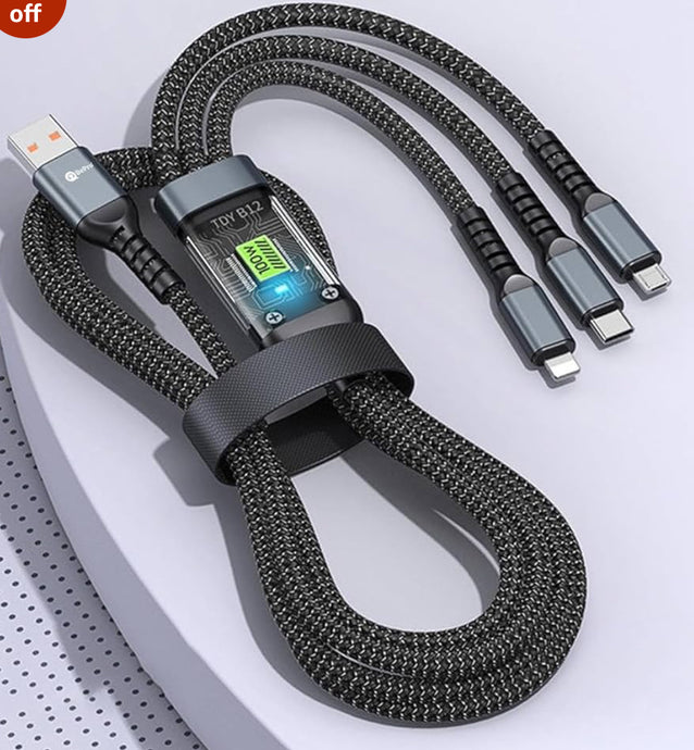 GaN PD 3.0 65W, PD + QC Fast Charger, 3-in-1 Charger/Adepter, Type C to C. White (3 in Cable)