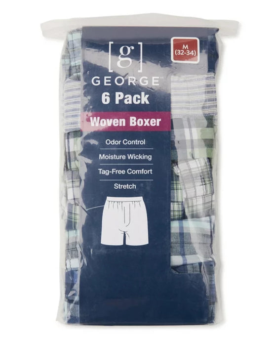 George Men's Moisture-Wicking Stretch Woven Boxers, 6-Pack, Sizes S-3XL