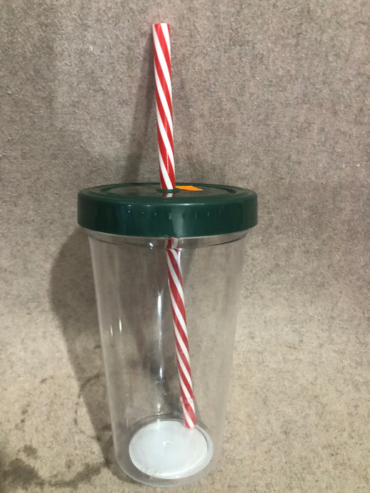Gobelet transparent Starbucks de 15 oz avec couvercle vert et paille rouge et blanche