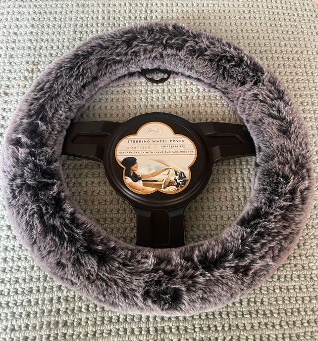 Grey & Black Plush Furry Steering Wheel Cover for 14" to 15"