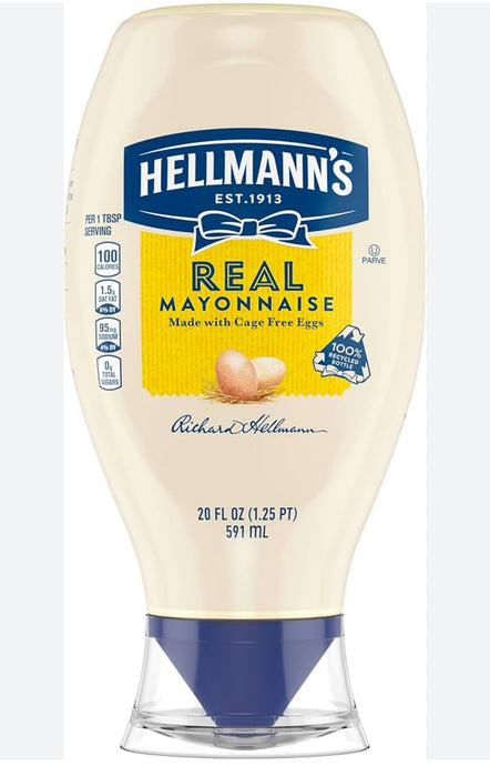Hellmann's Squeezable Real Mayonnaise 20oz 591mL DLC: Fev26