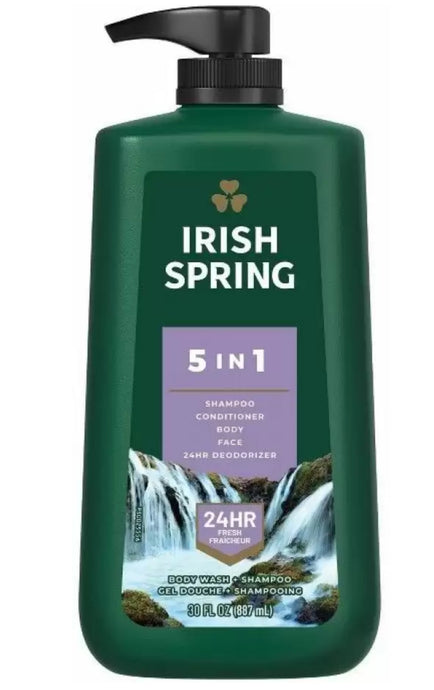 Irish Spring 5 en 1 homme pompe de lavage corporel, lavage corporel pour hommes, 30 Oz/ 887 ml