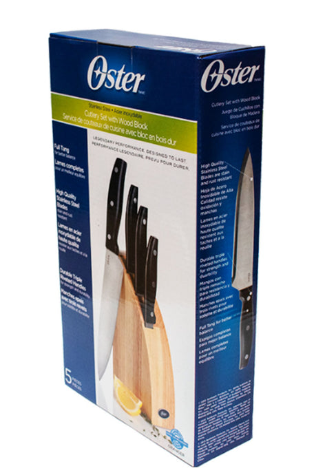 JUEGO DE CUCHILLOS OSTER ACERO INOX 5PZA BASE DE MADERA NATURAL