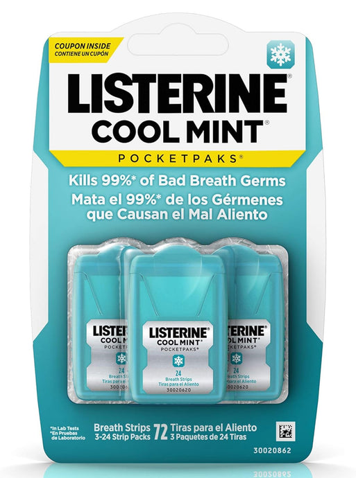 Listerine Pocketpaks Breath Strips, Cool Mint, 72 Count (Pack of 1)