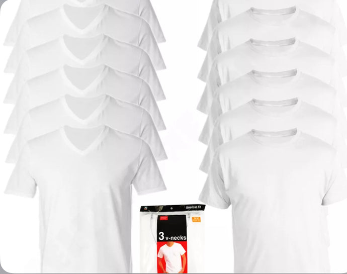 Men 100% Cotton Crew & V-Neck Tag less T-Shirt Undershirt White 3 Pcs (Size XL/XG)