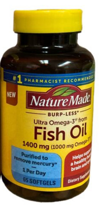 Nature Made Burp-Less Ultra Omega 3 Fish Oil 1400mg Softgels 65 Count DLC: Fev25