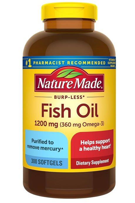 Nature Made Aceite de pescado sin eructos de 1200 mg, 300 cápsulas blandas, suplemento de aceite de pescado Omega 3 DLC: Oct26
