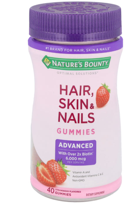 Nature's Bounty® Optimal Solutions® Advanced Hair, Skin & Nails Gummies (Strawberry) 40 Gummies DLC: Nov26