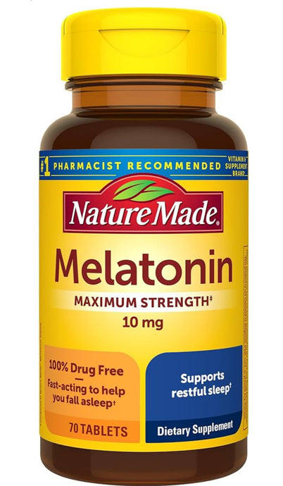 Nature Made Tabletas de melatonina extra fuerte de 10 mg, suplemento dietético para un sueño reparador, 70 unidades DLC: Mai25