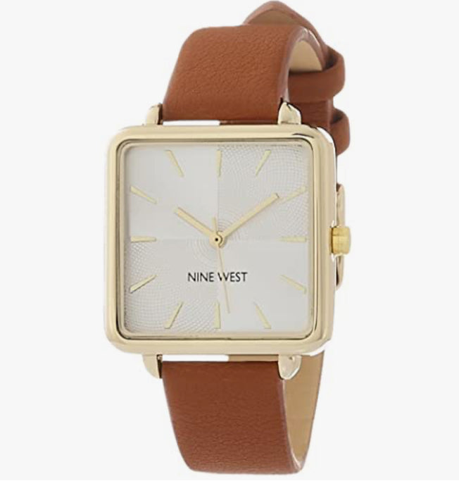Nine West Women's Japanese Quartz Dress Watch with Faux Leather Strap