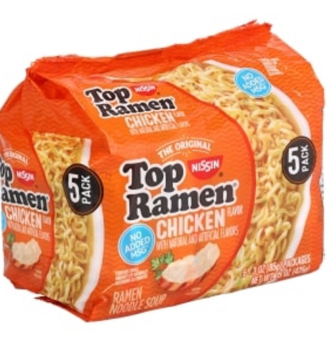 Nissin Top Ramen Noodles - Chicken, 5-ct. Pack/ DLC: 14 Nov24