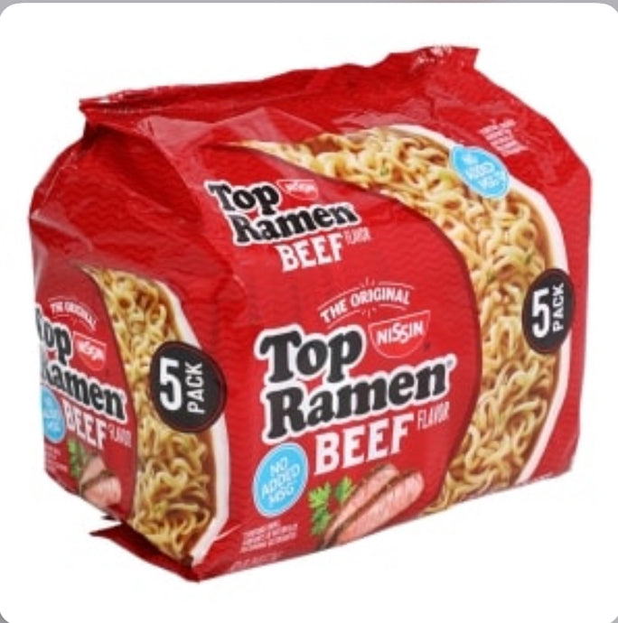 Nissin Top Ramen Noodles - Beef, 5-ct. Pack/ DLC: 08 Nov24