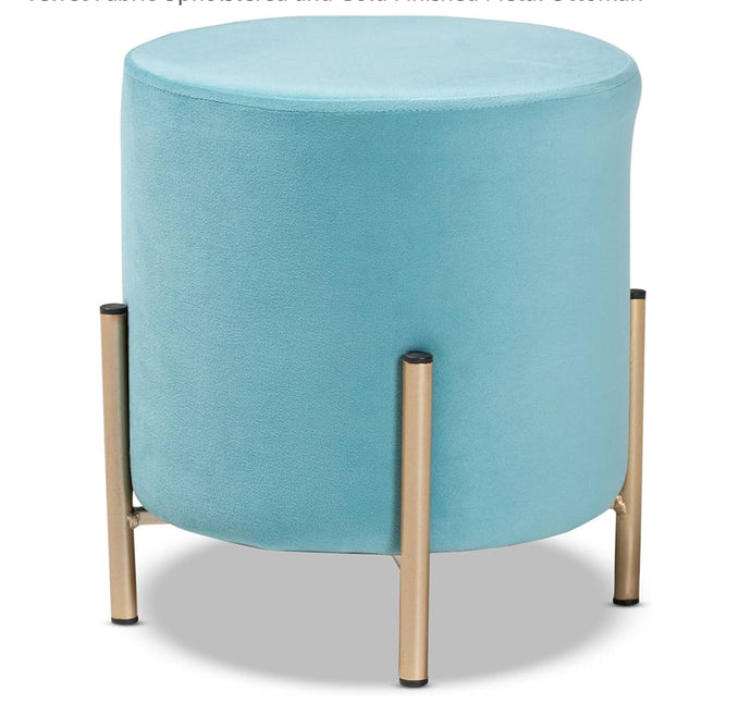 Thurman Velvet Metal Ottoman Blue/Gold - Baxton Studio