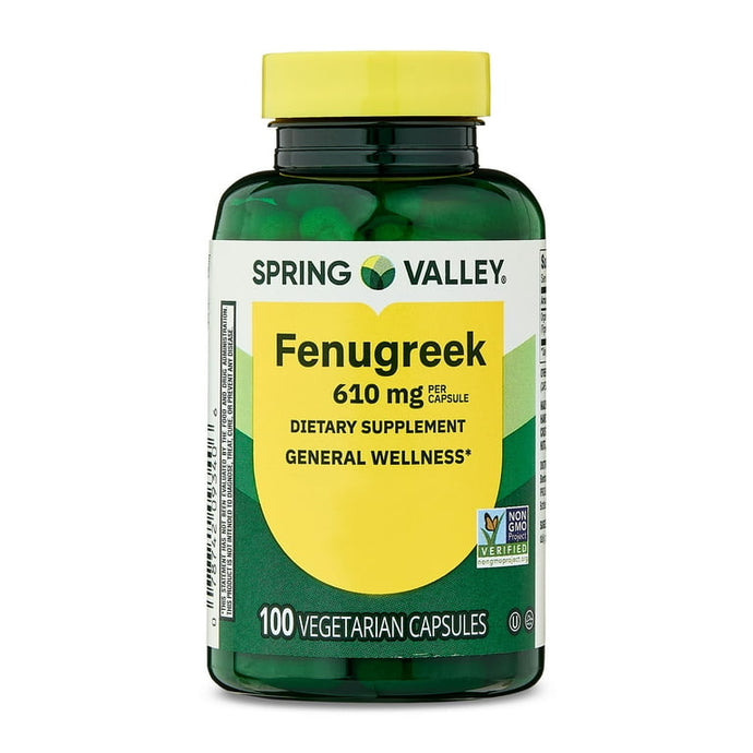 Spring Valley Fenugreek Dietary Supplement Vegetarian Capsules for General Wellness, 610 mg, 100 Count
