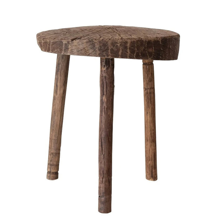 Storied Home Distressed Wood Table Natural: Round, No Assembly, 18" Height, 17" Width & Depth, 2" Thick Top