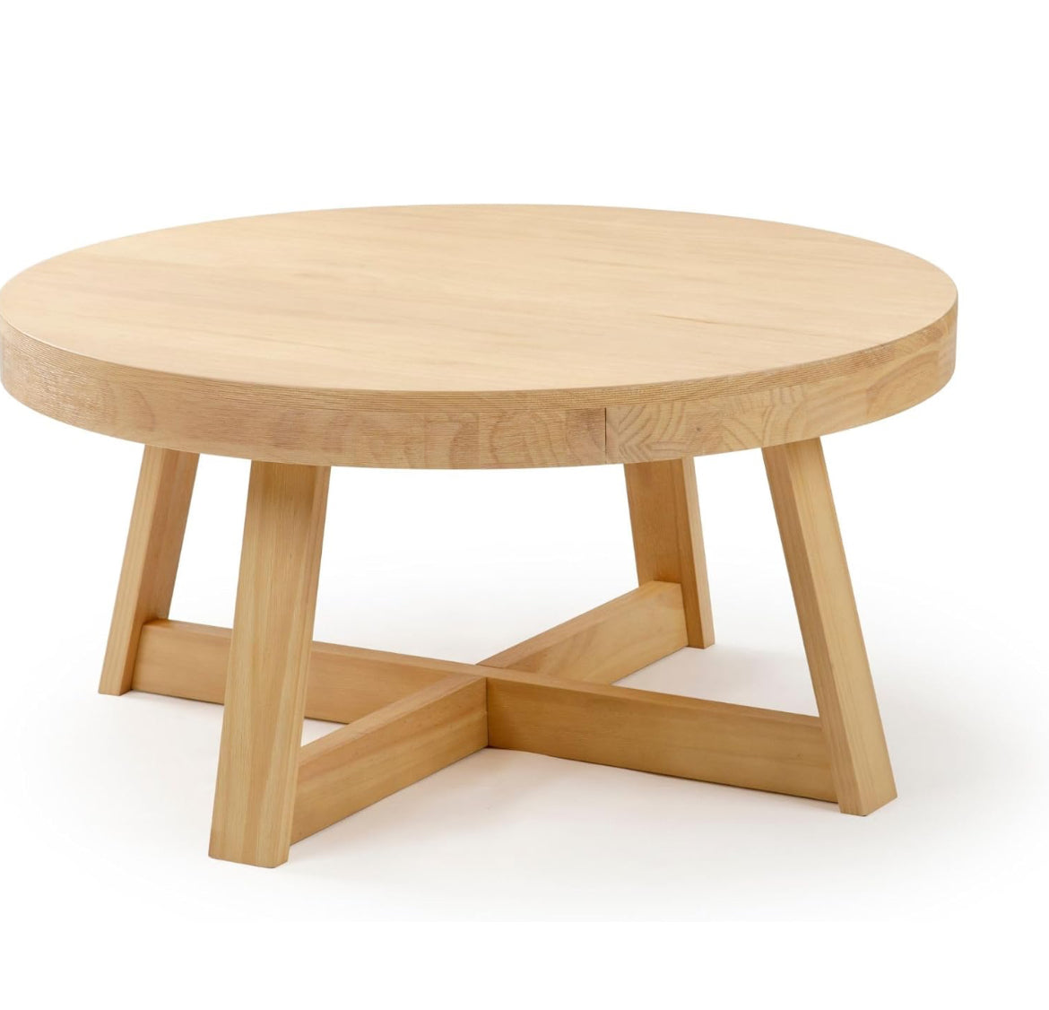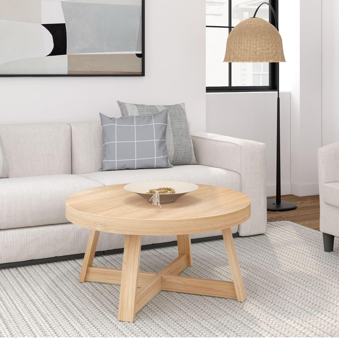Plank+Beam Mesa de centro redonda clásica, mesa de centro de granja de 36 pulgadas, mini mesas centrales rústicas para espacios pequeños, mesa de té para espacios pequeños, cepillo de alambre rubio