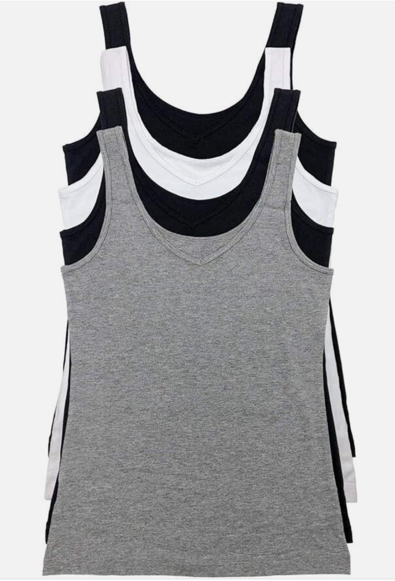 Felina Women Reversible Cotton Tank Tops 4-Pack, White, Gray, 2x Black Medium