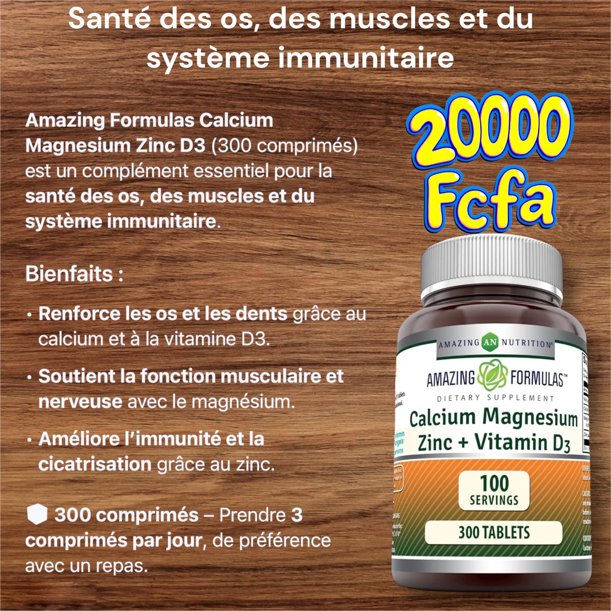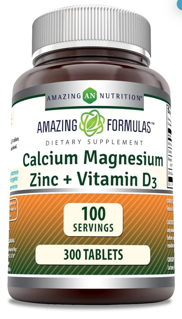 amazing nutrition Calcium 1000mg - Magnesium 400mg - Zinc 25mg Plus Vitamin D3 600 IU - 300 Tablets Per Bottle DLC: 01/28