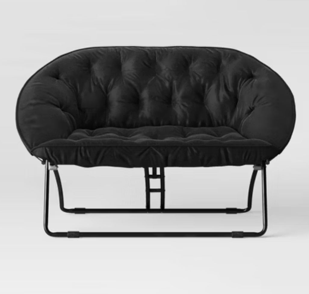 Double Dish Dorm Chair Black - Room Essentials: Foldable, No Assembly, Modern Style, Steel Frame