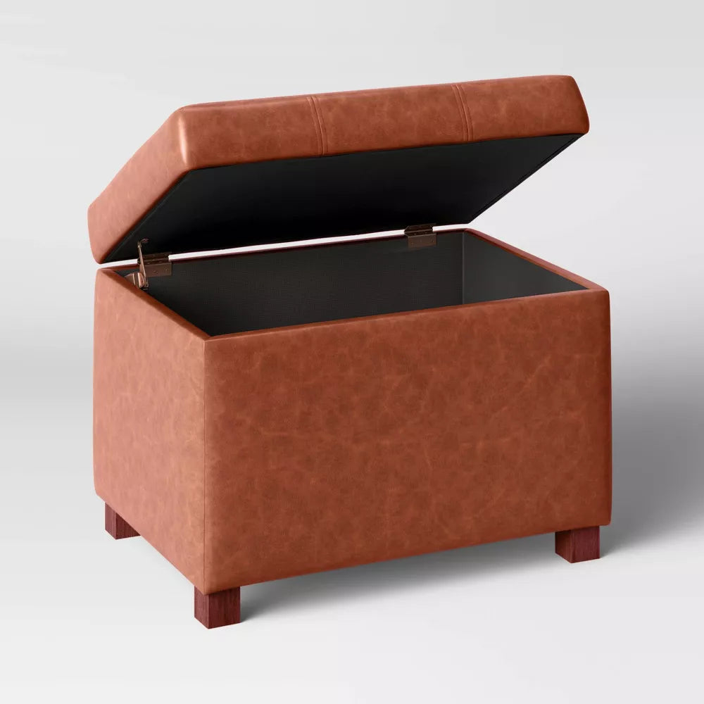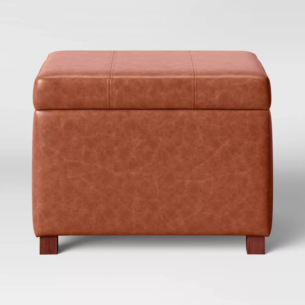 Essex Single Storage Ottoman Caramel Faux Leather - Threshold: Upholstered Rectangular Bench with Lid