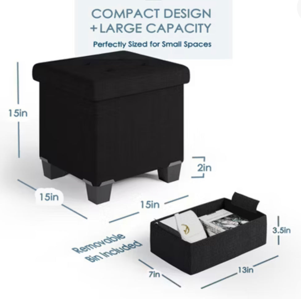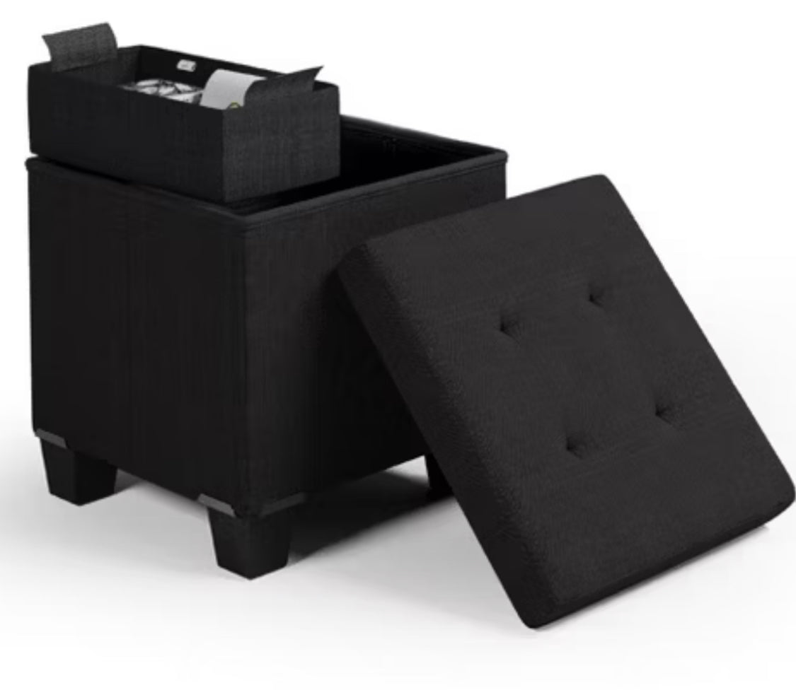 Nestl 30" Storage Ottoman Bench with Storage Bins, Rectangular Storage Bench - Black Leather