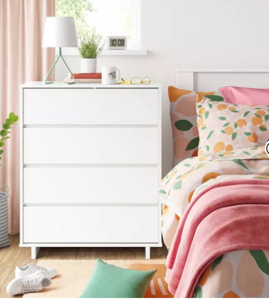 Modern 4 Drawer Dresser White - Room Essentials: Laminated, Streamlined, with Anti-Tip Hardware