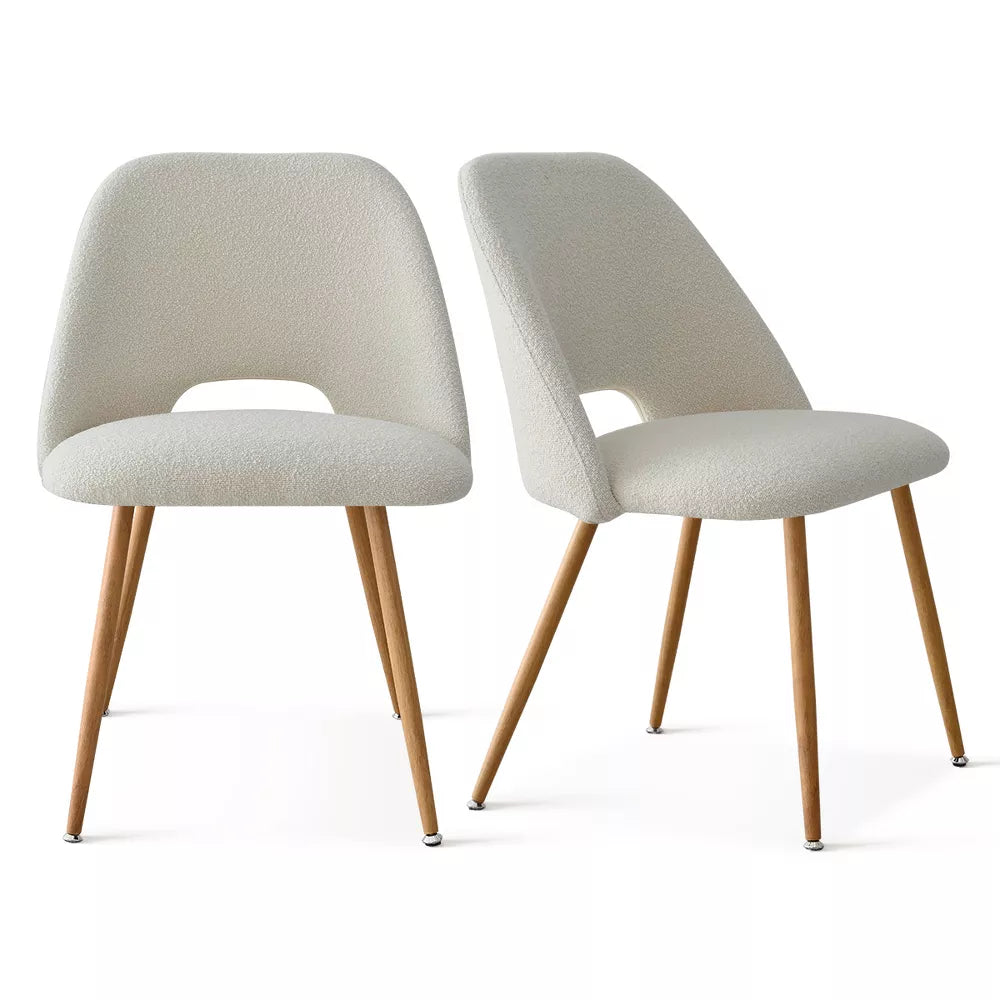 Edwin Boucle Dining Chair Set Of 2,Modern Kitchen Dining Room Chairs with Curved Round Backrest,Beige Boucle Chairs with Oak Metal Legs-Maison Boucle