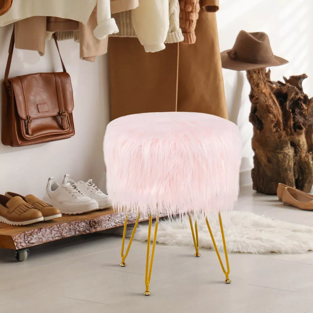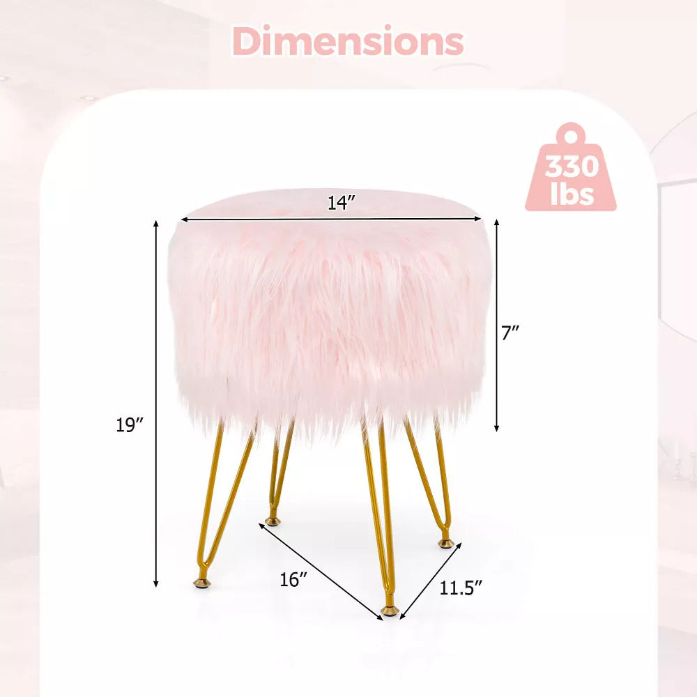 Costway Faux Fur Vanity Chair Makeup Stool Furry Padded Seat Round Ottoman Pink