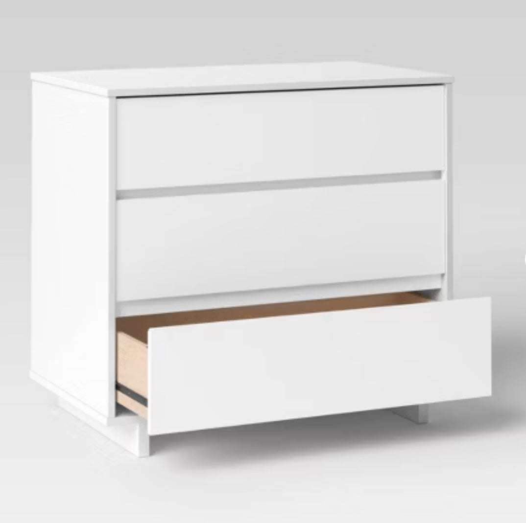 Modern 3 Drawer Dresser White - Room Essentials: Laminated, CARB Certified, Includes Anti-Tip Hardware