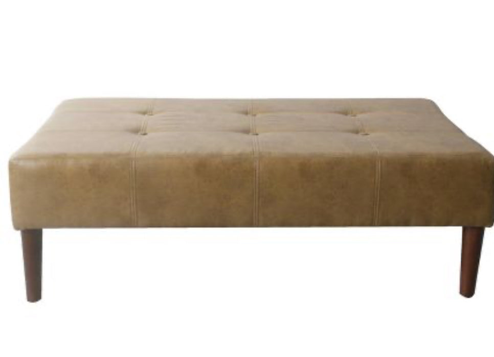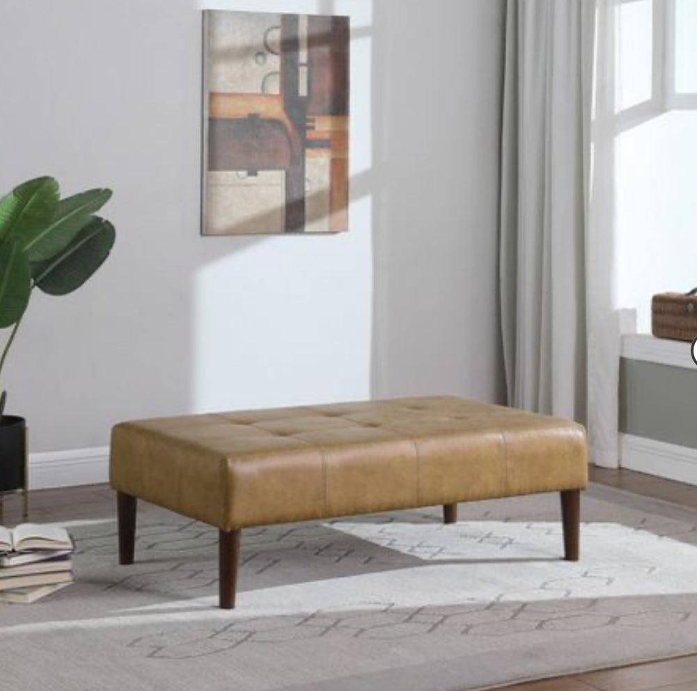 Tufted Coffee Table Ottoman Faux Leather Light Brown - HomePop