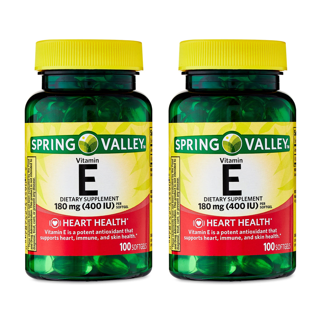 Spring Valley Vitamin E Dietary Supplement Softgels for Heart Health, 180 mg, 100 Count