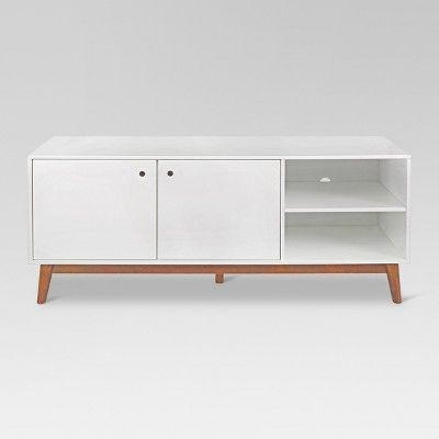 58" Amherst Mid Century Modern TV Stand White/Brown Vente