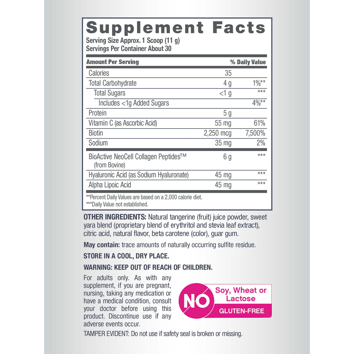 Collagen Beauty Infusion – Hyaluronic Acid + Biotin, goût Tangerine Twist (11.6 oz / 330 g) – Poudre