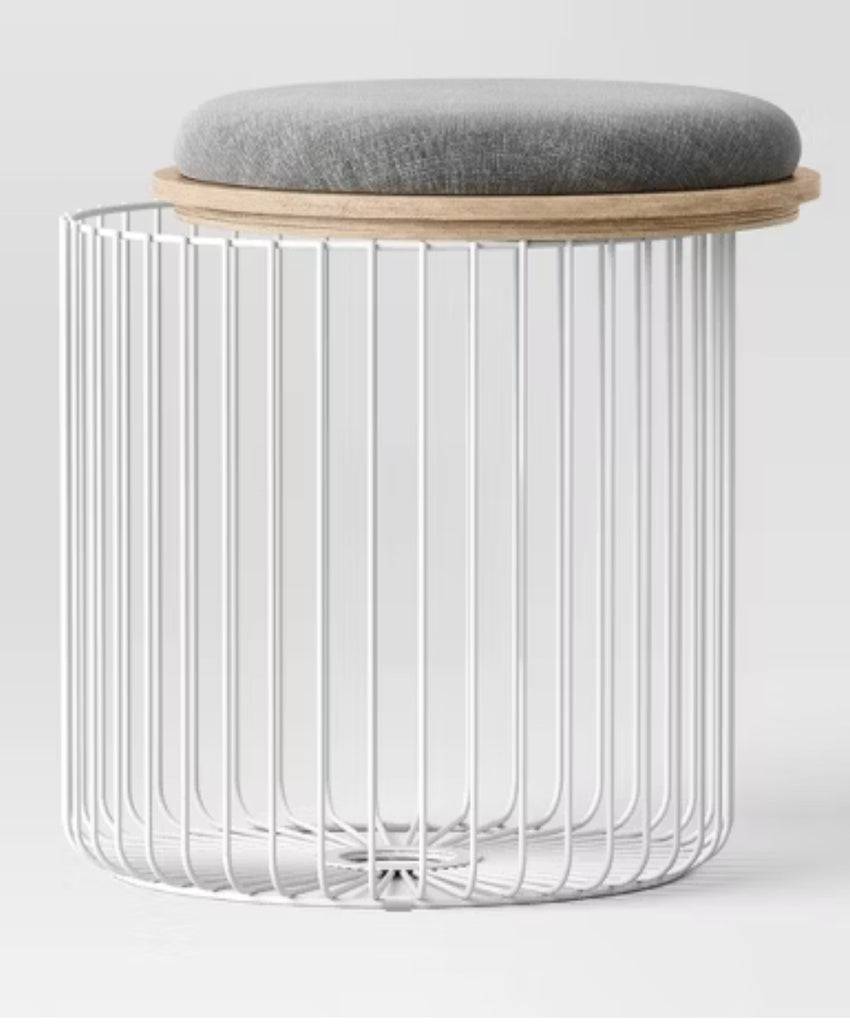 Wire Storage Dorm Table and Ottoman White - Room Essentials™: Padded, No Assembly, Metal Frame