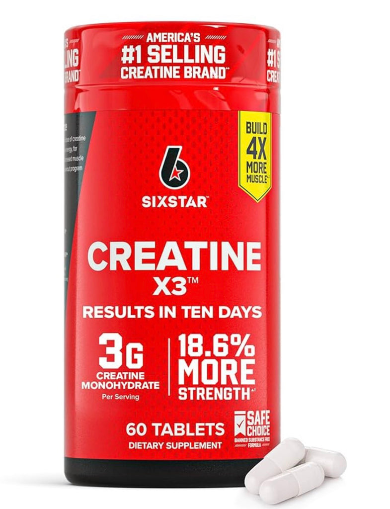Six Star Creatine Pills, X3 (60 Caplets) - Creatine for Women & Men - Creatine Capsules Support Muscle Strength DLC: 02/2028