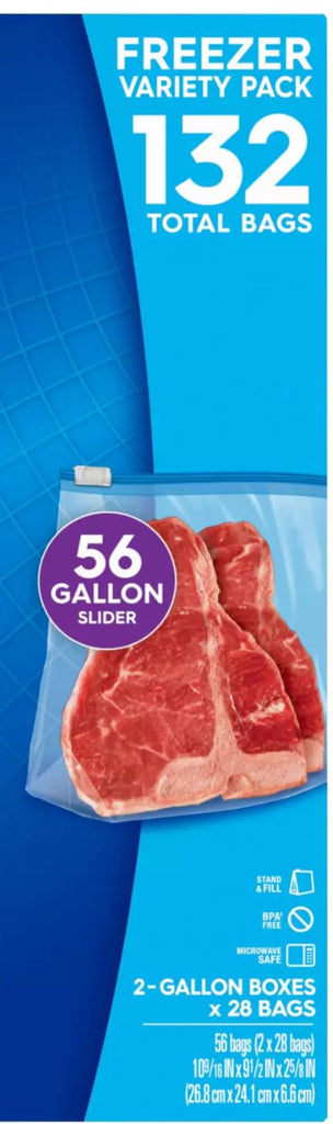 Ziploc Slider Freezer Bags Variety Pack Power Shield Technology 56 Gallon Bags