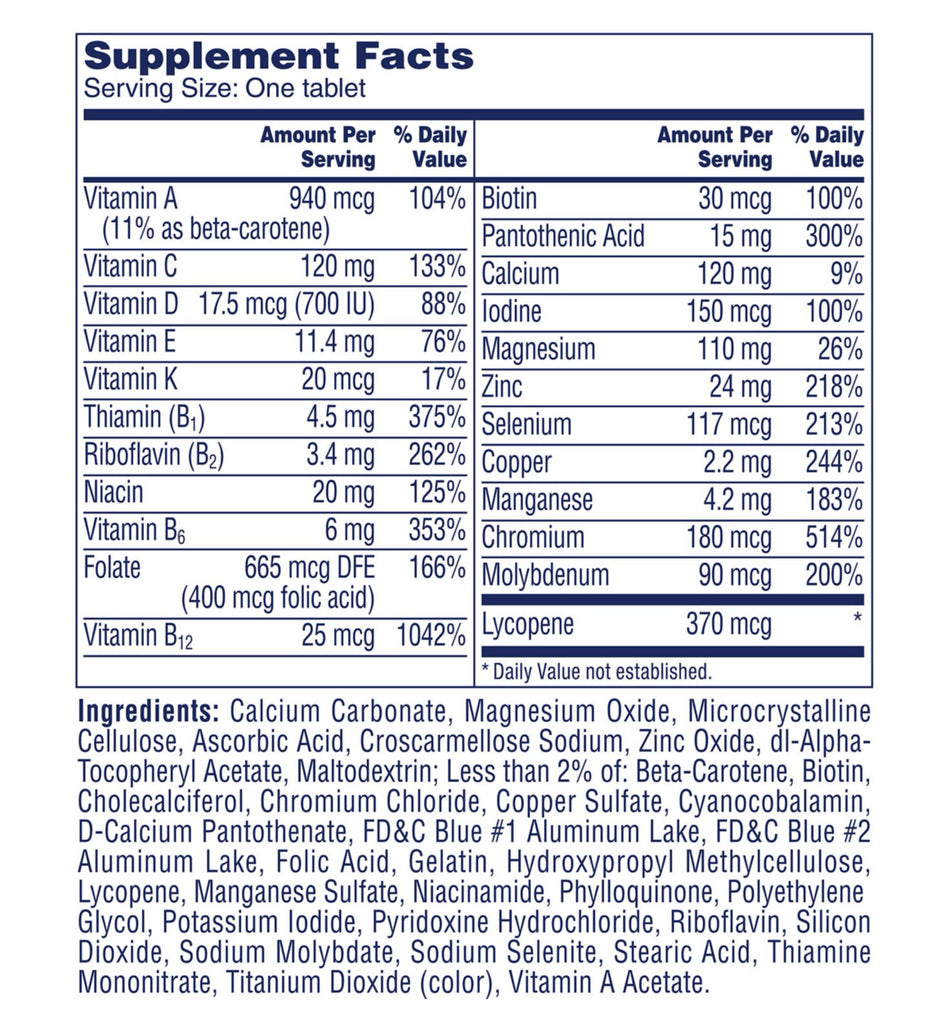Vous savez ce que vous faites, tout comme cette multivitamine complète pour les hommes de plus de 50 ans. Il est spécialement formulé pour soutenir six préoccupations clés du vieillissement :* santé cardiaque,‡ métabolisme énergétique sain,† santé oculaire, fonction cérébrale saine, pression artérielle saine§ et santé immunitaire.